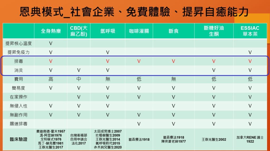 • 戈特模式是以熱療為核心,提昇身體核心溫度,觸發人體發燒機制,喚醒免疫細胞的無毒療法
